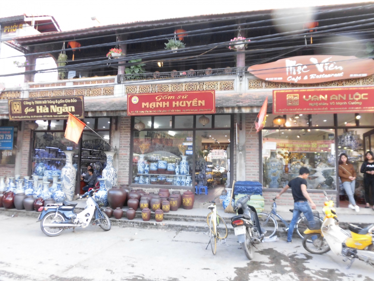 ロンビエン・バスターミナルから47Aのバスに乗りバッチャンに行ってみました。メインの通り沿いに数多くのお店が立ち並んでいます。店の前に出している商品は、お土産用で同じような商品が多いですが、中に入ると個性のある商品も並んでいます。古いものは、希少なのでしょうか、かなり良いお値段です。