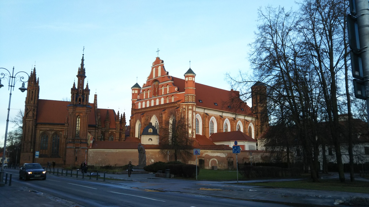 ビリニュス観光で旧市街を散策していて、聖アンナ教会にも行ってきました。中心の通りから少しそれた通りにある聖アンナ教会は他の建築物とは若干異なっていて、壮大なレンガ造りの建物で非常に印象に残っています。