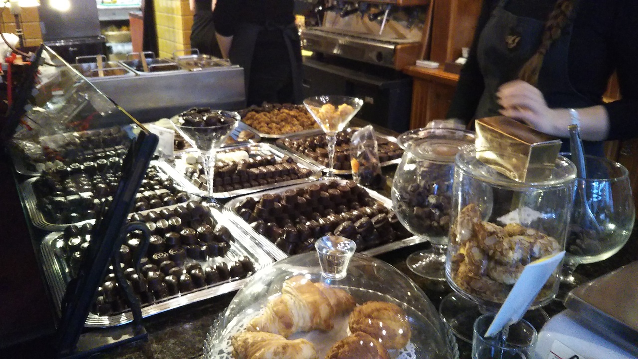 家族へのお土産でチョコレートを購入しました。200gのボックスを購入して、そこに指さしで好きなチョコレートを詰めていってもらいました。多くのチョコレートを箱いっぱいになるまで入れてもらって5.95ユーロはめちゃくちゃ安い!