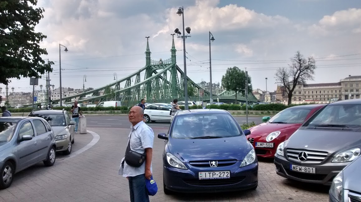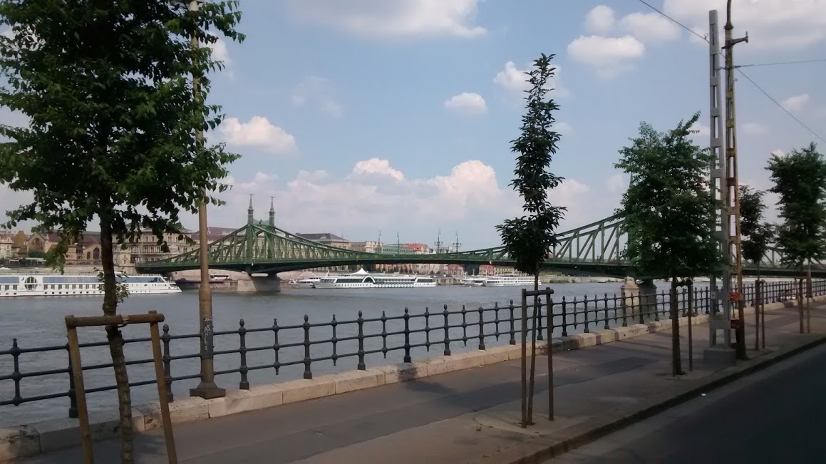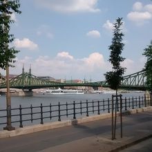 ブダペストのドナウ川には、きれいな橋がたくさんありますが、自由橋は緑色の鉄橋で、特に気に入りました。ゲッレールト温泉に隣接して、付近はきれいな公園が広がっていました。トラムもこの橋の上を通っています。