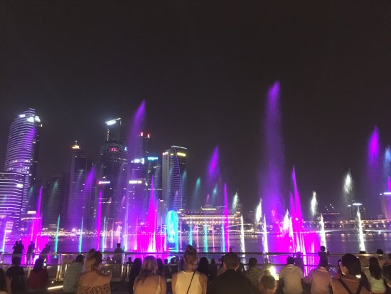 マリーナベイサンズの前の広場から見ました。水のスクリーンや音と水の華麗なショーはとっても素晴らしかったです。無料でこのクオリティーはなかなかすごいと思いますよ。広場の雰囲気も良くて、のんびり楽しむことができました。