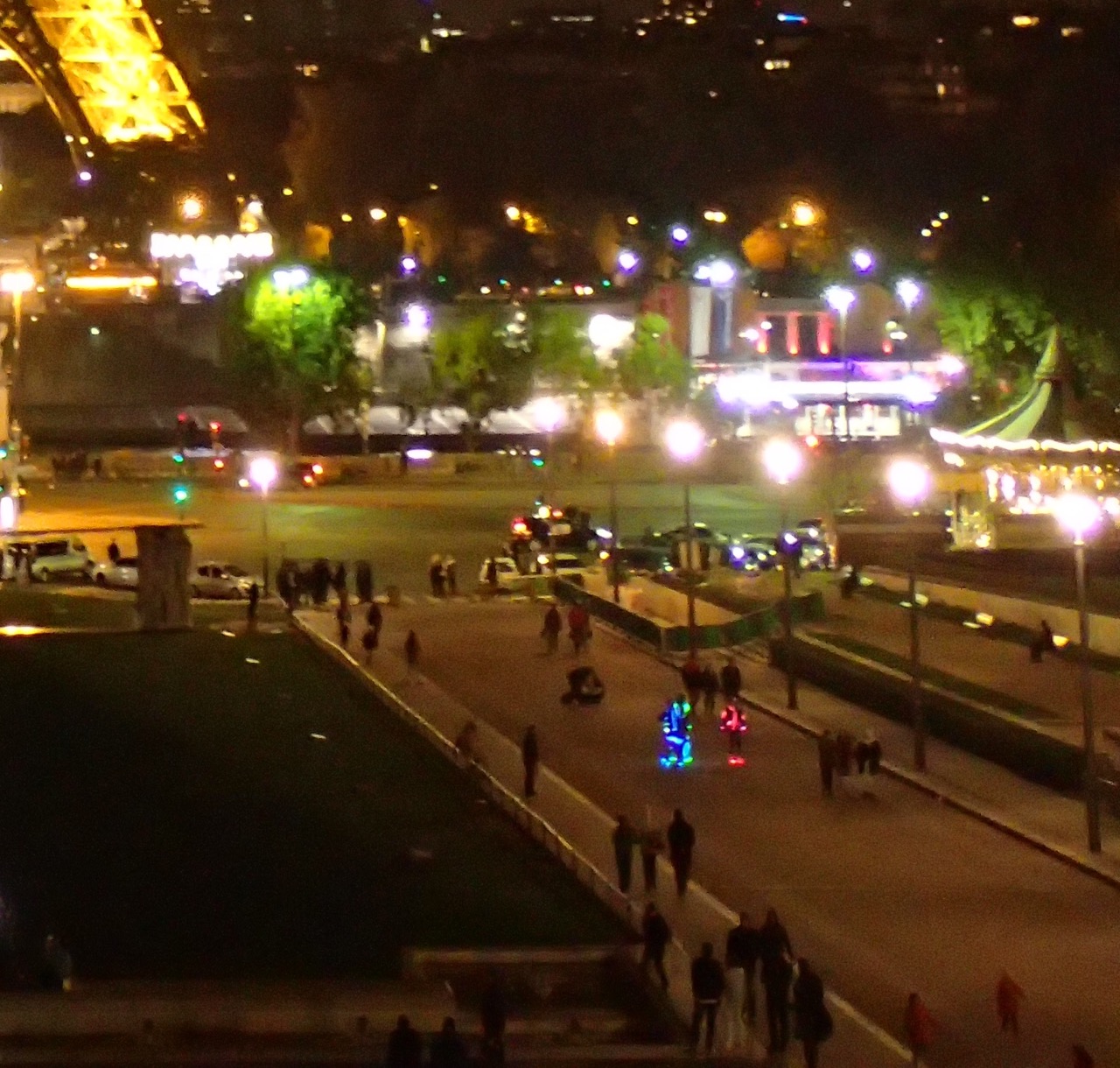 夜にエッフェル塔のライトアップを見に行きました。メトロのトロカデロ駅を出て、トロカデロ庭園を進むとイエナ橋がありました。エッフェル塔のすぐ前です。ライトアップされていてきれいでした。