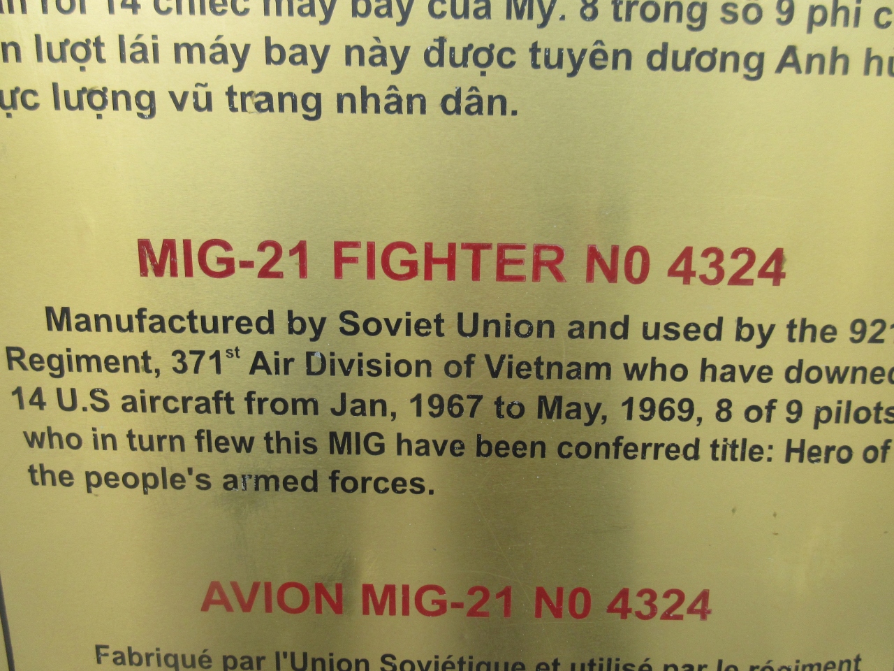 ミグ21型戦闘機が展示されている。サイゴン陥落の際に大統領官邸に突入した戦車の展示もある。墜落した飛行機の部品を集めて展示しているスペース等があり本物を見ることが出来る。余談ですが、ここの女性用トイレは中から鍵をかけると、外からしか開けられない個室があるので注意。