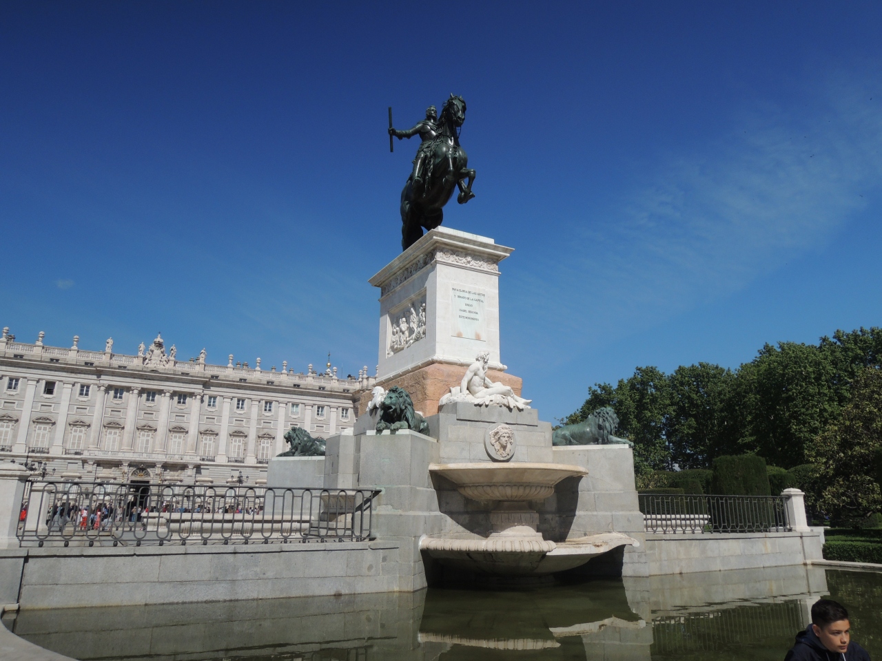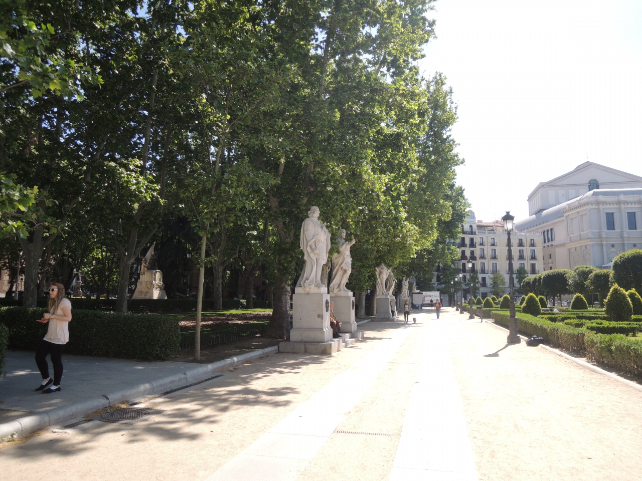 地下鉄オペラ駅から王立劇場を過ぎたところに広がる広大な広場で、マドリード王宮の東側にあるため、オリエンテ(=東)広場と名づけられたとのこと。フェリペ4世の騎馬像やカスティーリャ王国の王たちの像計20体が建っていて、緑も多く、木陰のベンチに涼みながら景色を楽しめました。