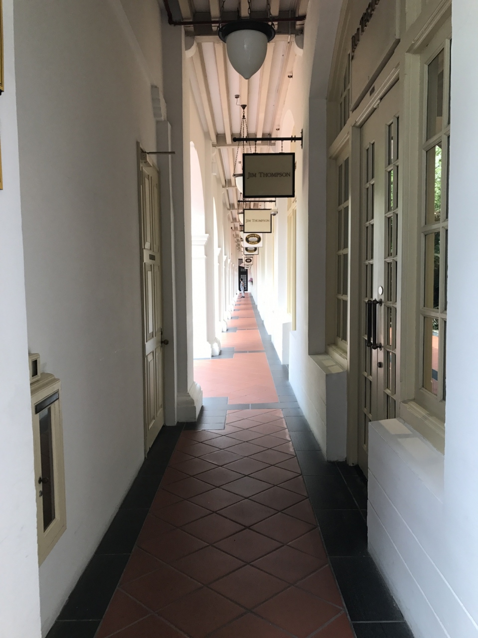 名高いブランドばかり立ち並び、また趣のある建物がすてきなアーケードです。タイを代表するシルクのブランド、ジムトンプソンのショップがあったので、バッグを購入しました。タイの免税店で買うほうか安い気もしましたが、そんなにかわらないかも。