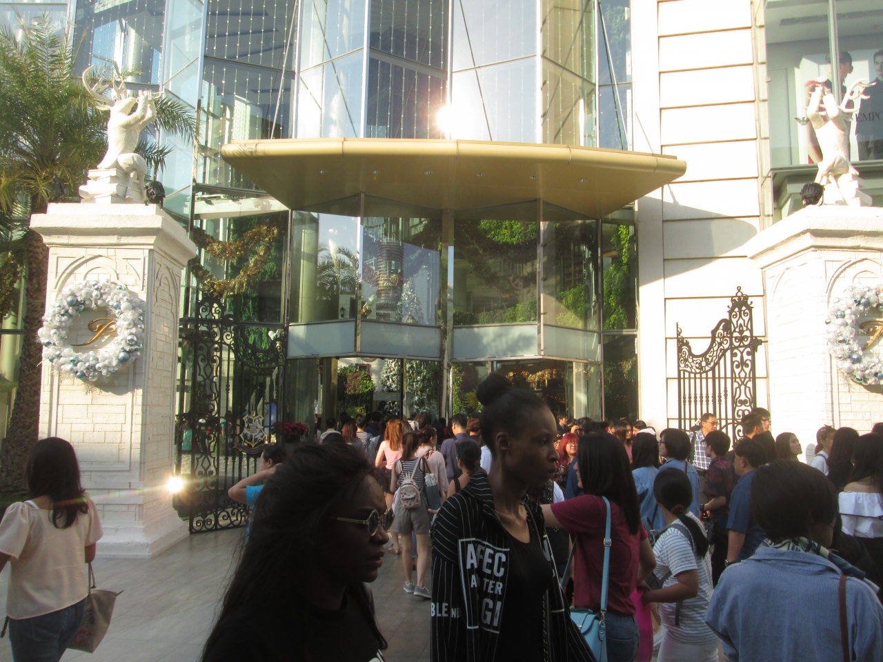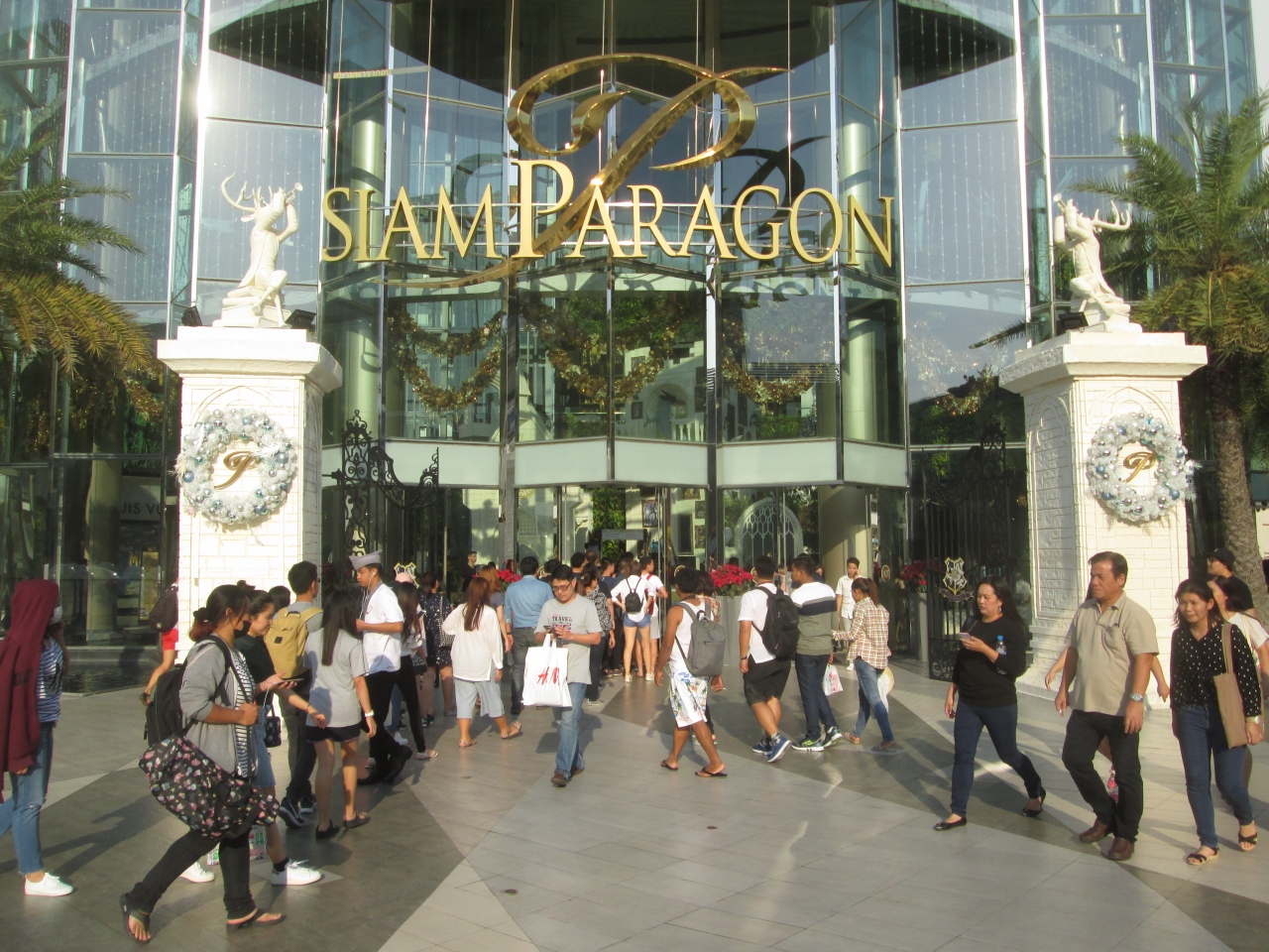 クリスマスイヴのサイアム パラゴンに訪問しました。2017年の年末はヨーロッパ調の入口になっており、白で統一されたクリスマスの飾りでした。白いクリスマスツリーが珍しくて、皆さんサイアム パラゴンに入る前に記念撮影をしていました。