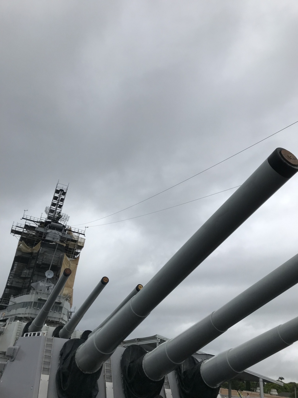 ワイキキから42番のバスで行きました。荷物を預け、パールハーバーセンターの受付に、並んで、音声ガイドつきのチケットを購入しました。チケット購入後、無料の緑のシャトルバスに乗って、フォード島にある、戦艦ミズーリに行きました。IDと引き換えに日本語音声ガイドを借りました。番号のところに行き音声を再生させるタイプのものです。また、日本人のガイドツアーもあり、3カ所で、特攻隊のことなど、興味深い話をしてくれます。船の中に入ることもでき、食堂、寝室、歯医者などの様子もみられ面白かったです。
