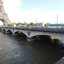シャイヨー宮からトロカデロ庭園を通って、エッフェル塔に向かう時にセーヌ川を渡るのがこの橋です。エッフェル塔の真下にあたり、歩道も広いため撮影スポットとして写真を撮る人も多い場所です。また物売りも多く声をかけられるのでこれには注意が必要です。橋の下には、セーヌ川クルーズ船のバトーパリジャンの乗り場があり、行き交う船を見ているのも楽しかったです。