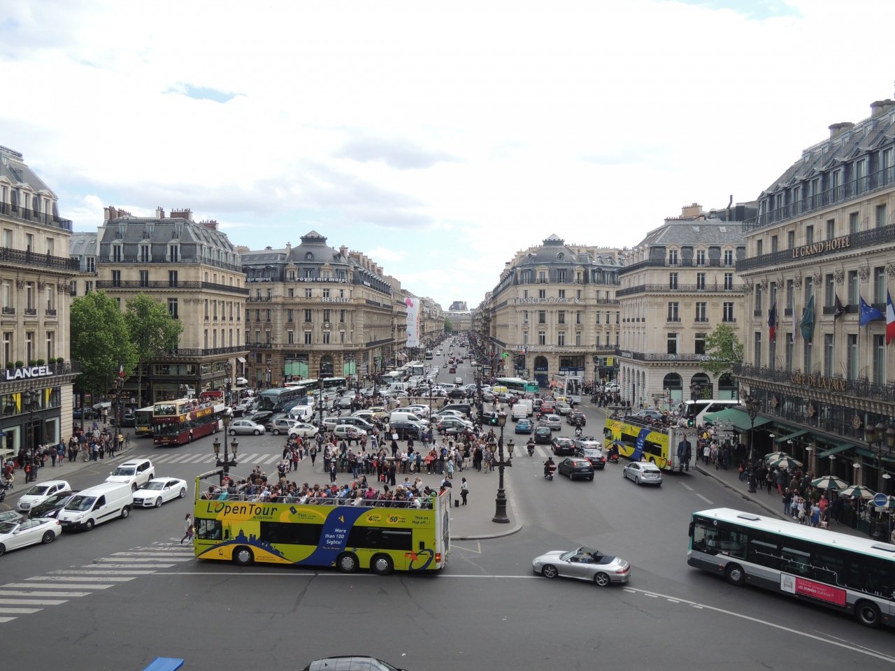 今回オペラ座内部を初めて見学し、オペラ座のベランダからオペラ大通りを撮影してみました。オペラ大通りには、たくさんのショップがあって、ロクシタン、レペット、ピエールエルメ、ポールなど、日本でも人気のショップが沢山あってショッピングも楽しめますのでパリに来たら一度は歩いてみることをお勧めします。