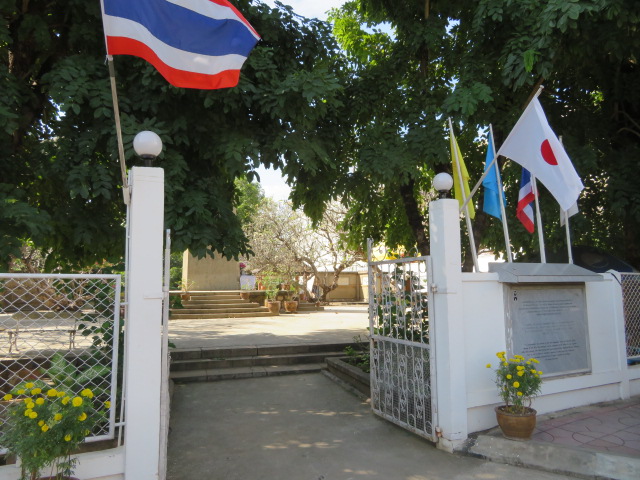 旧泰緬鉄道のクウェー川鉄橋駅、クウェーヤイ川近くにあります、泰緬鉄道の建設に携わって亡くなった人々の為に日本軍によって1944年2月に建てられた慰霊碑です、広い敷地の中にあるので入口を入るとすぐわかります、そばでお線香が売られていましたの一緒に行った人全員で上げてきました、隣接して第二次世界大戦博物館がありました