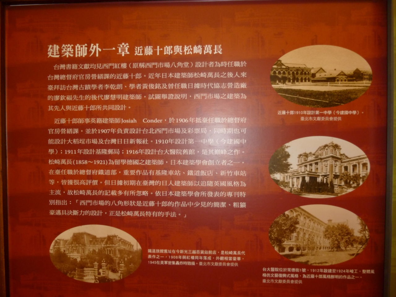 設計は台湾総督府営繕課・近藤十郎で彼の作品は台北市立建國高級中學、旧建成小学校で今は台北当代芸術館、台湾大学医院旧館が現在も台北市内に現存しています。