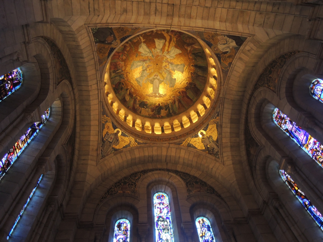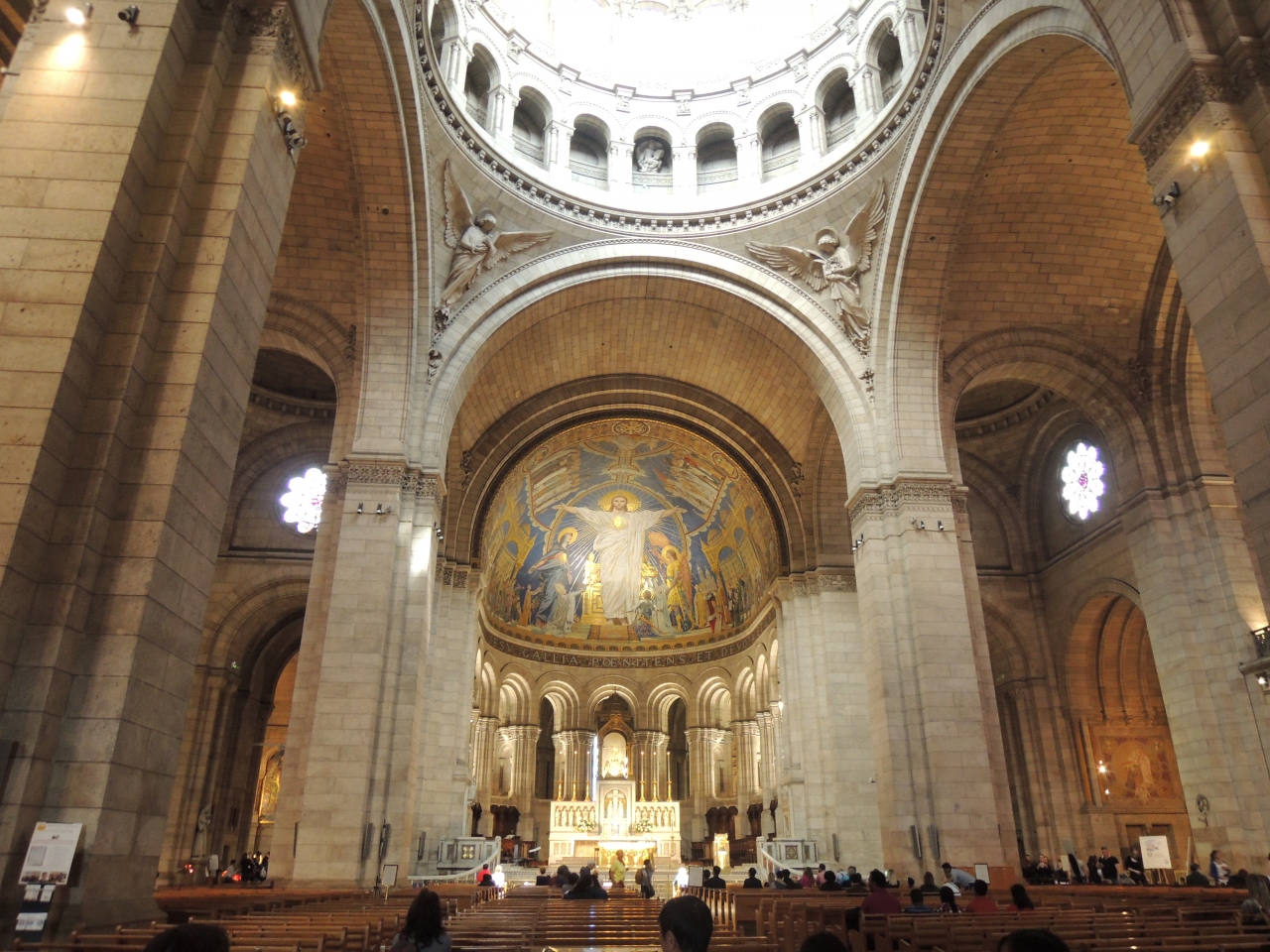 サクレクール寺院は、イスラム教のモスクのようなビザンティン様式のバジリカ大聖堂が特徴的で、黒人が多いモンマルトル地区同様に、パリ市内の他の教会とは異なる雰囲気でした。教会内部も、正面のキリスト昇天のモザイクが特徴的であり、これが比較的新しく1914年に完成した建物ということにも驚きます。多民族・多文化が同居するパリを象徴するような場所だなと感じながら、さまざまな展示物を眺めていました。