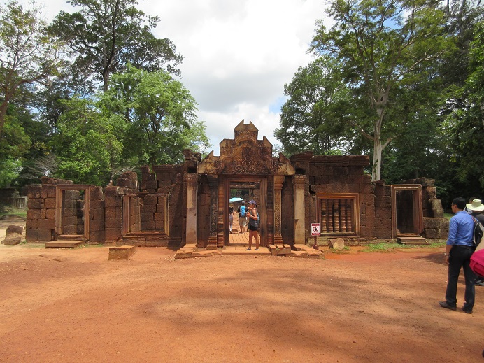 アンコールワットから少し離れているけれど是非足を運んでみるべし、観光客も少なめで穴場です。前日の雨で水たまりができていて足下が少しぬかるんでました。