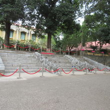 4匹の龍がいる階段の上に、かっては皇帝の宮殿があったそうである。行って見るとそれらしき建物は見当たらなかった。奥の方に旧ベトナム軍が作戦司令部として使っていた薄緑色の建物が見えた。龍の階段は柵がしてあり上ることはできない。