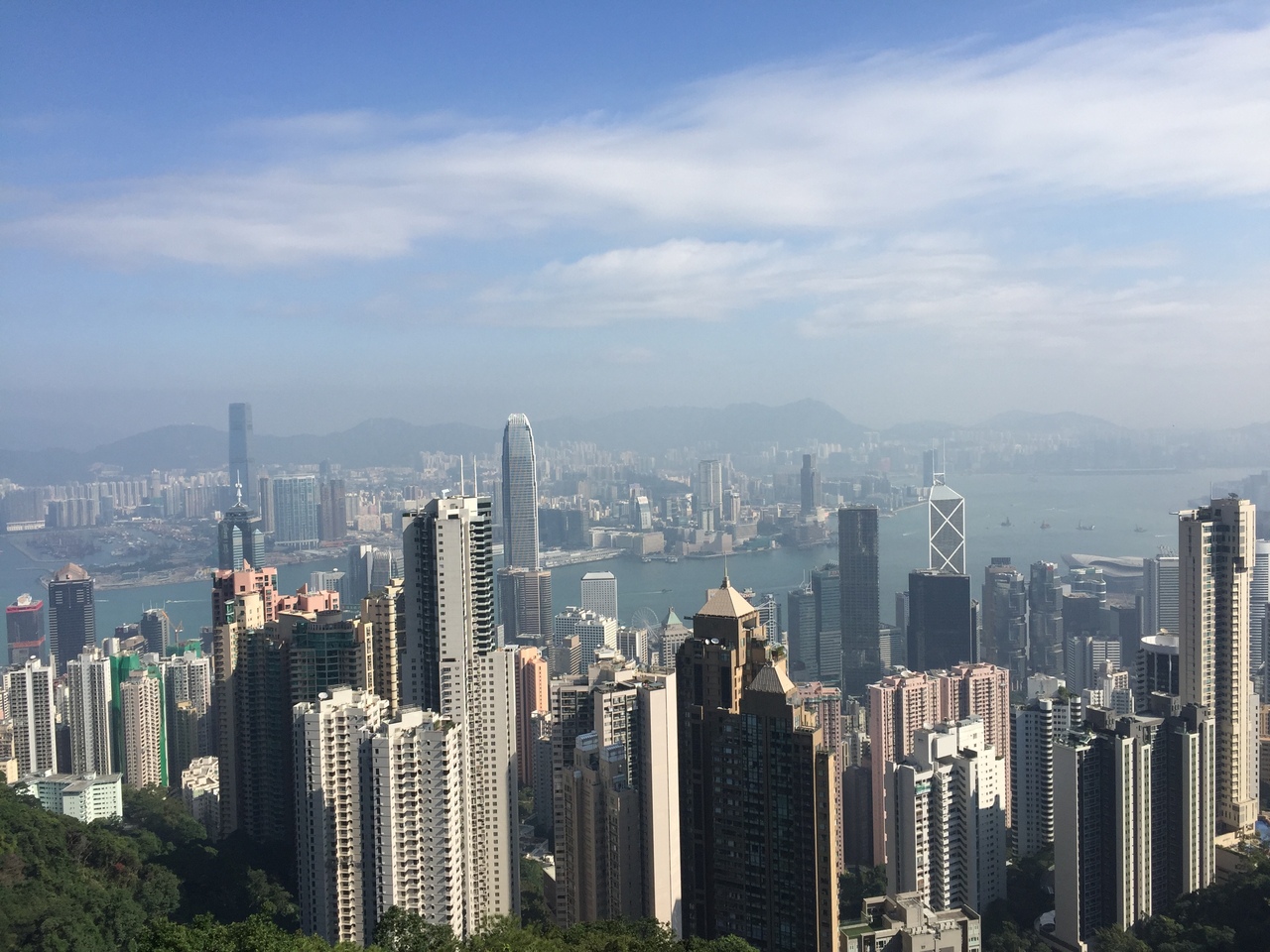 オクトパスカードも使用したので、朝一に行くと並ぶこともなく、トラムに乗れました。進行方向の右側に乗った方が景色が良いです。できるなら右側に乗ってください。頂上に着くと香港島まで一望できてよかったです。滞在時間は1時間程で帰ってきたので、帰りのトラムはほとんど人がおらず、1番前の席で景色を堪能できました。夜だけでなく、昼間の景色も良かったですよ。