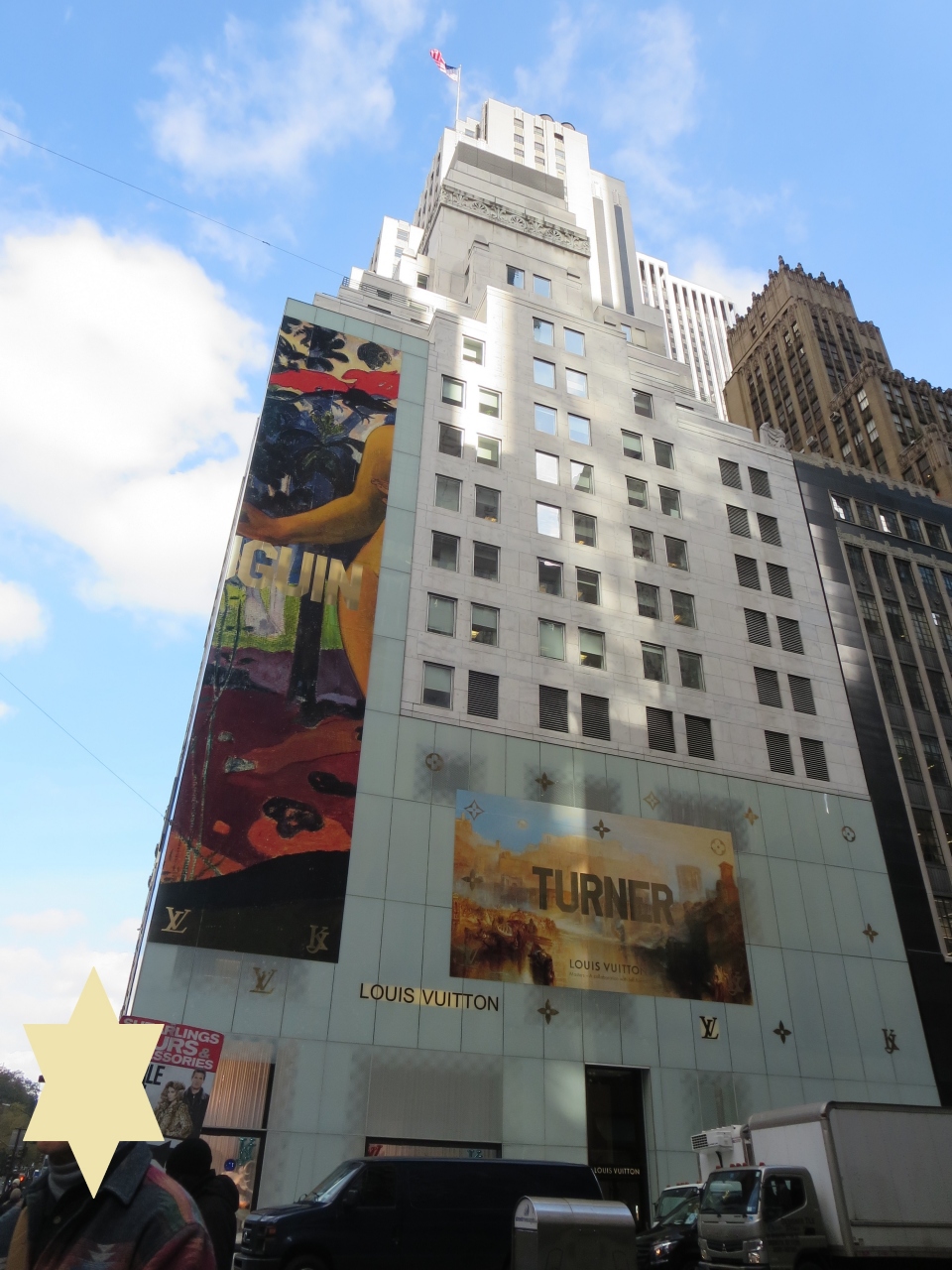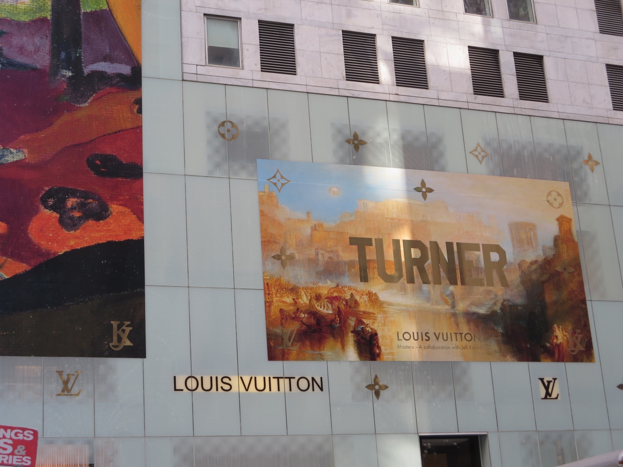 ニューヨーク5番街の一等地、57thとの交差点、ティファニーと向かい合う位置にあります。ルイヴィトンのロゴが飾られた壁面には現在コラボしているターナーの文字も併せて飾られています。ヴィトンカラーの薄いブルーの外壁は5番街にあっても落ち着いた雰囲気でウインドウショッピングでも十分楽しめます。