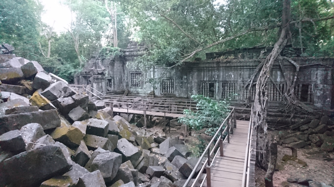 プレアヴィヒアとベンメリアに訪れる日帰りツアーで。当初は先にベンメリアに寄る予定だったが、ガイドさん曰く午前中は中国人の団体客が多いので夕方行きましょうとの事で、夕方寄ったら他に1組日本人グループがいたのみ。静かに観光できた。