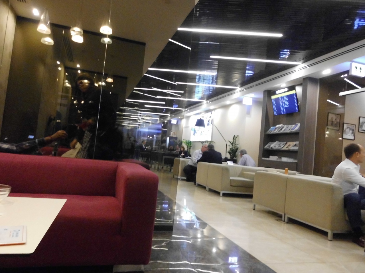 たべものは軽食が用意してあり、飲み物も豊富。アルコールももちろんありで、すごしやすいラウンジだった。
