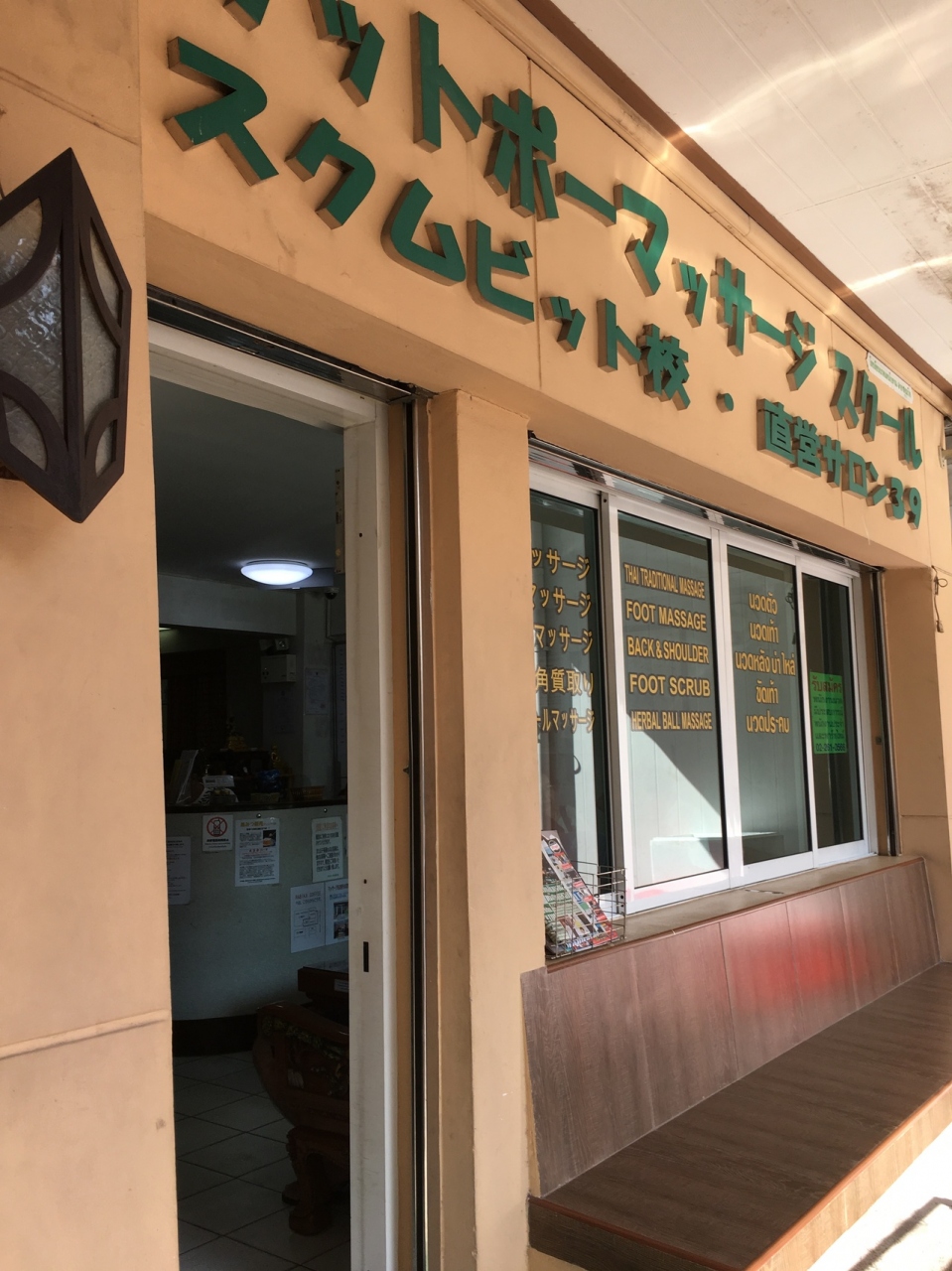 BTSプロンポン駅から徒歩3分ぐらいにあるマッサージ屋さんです。タイマッサージ1時間250B、足ツボ1時間300Bですが、それ以外にチップを50B渡した方がいいらしいです。チップは1時間×50Bが相場だとか。お客さんはほぼ日本人でした。スパではないし、そんなに綺麗ではないですが、まあまあ安いし、それなりに上手なので、人気店でした。