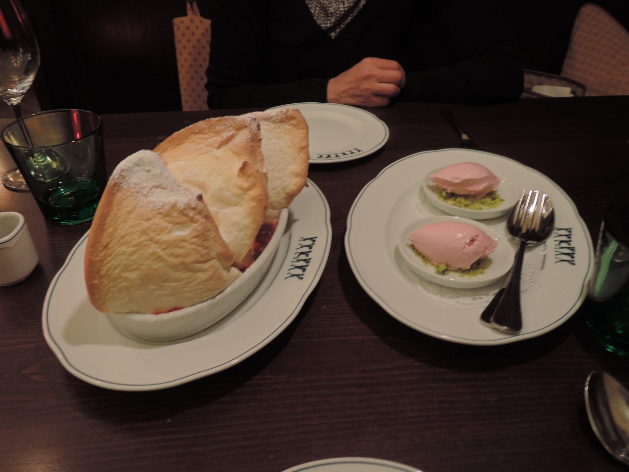 どちらかというと高級なお店で、お値段もそれなりにしますが、落ち着いた雰囲気の中で素晴らしいオーストリア料理を堪能することができました。ウィーンはこの時で9度目でしたが、思い出に残る食事になりました。デザートのザルツブルガーノッケルン、大きいので2~3名で1つで十分です。また、作るのに時間を要するので、メイン料理がサーヴされるまでに注文されるのをお薦めします。オーストリアワインも種類が豊富です。