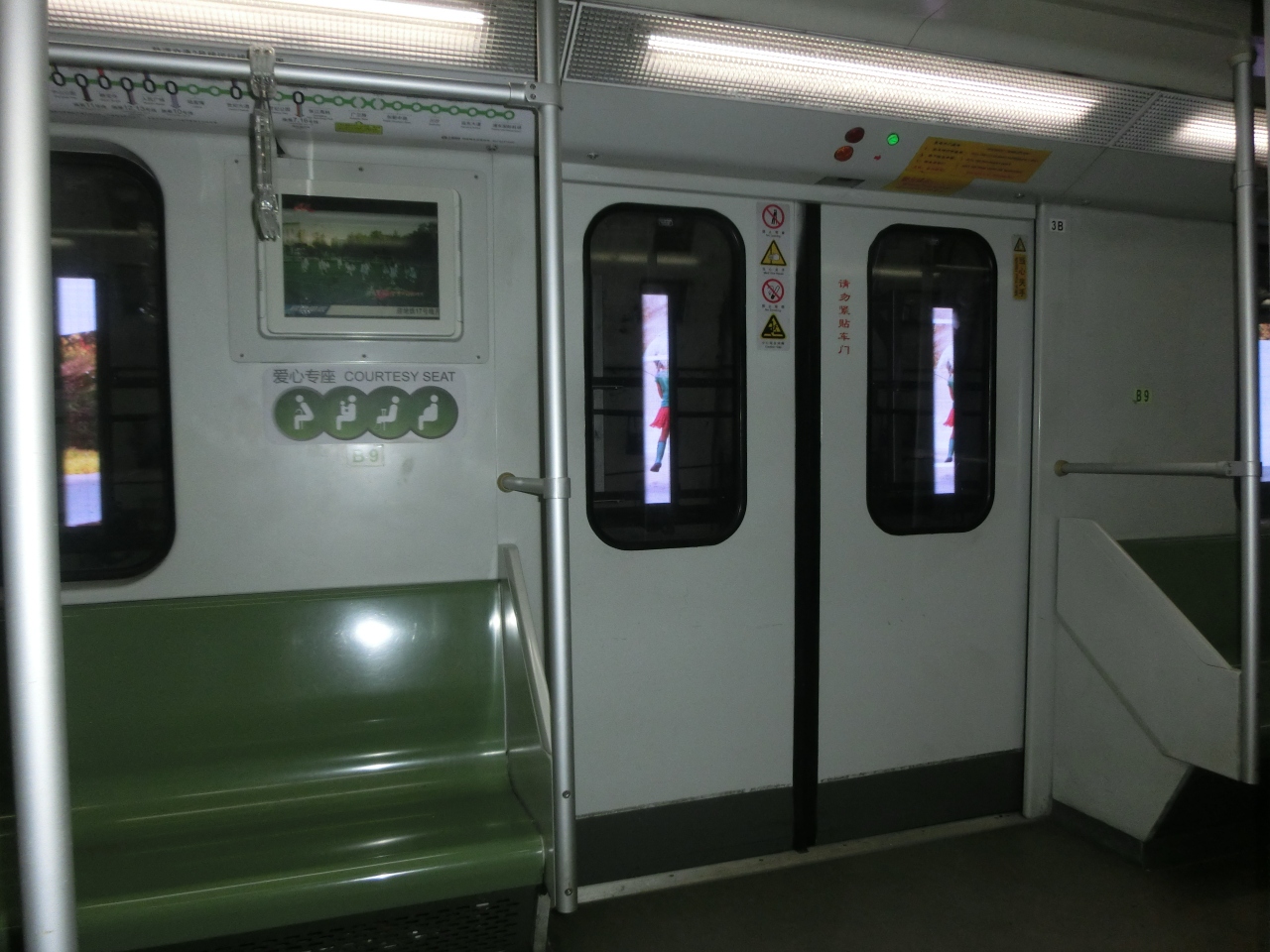 上海の地下鉄は安くてわかりやすいです。3日券が45元でした。入り口にX線の検査場があります。他は日本の地下鉄と同じです。駅の放送は中国語と英語ですが英語の方が分かりやすいです。観光名所を通る2号線は混雑しています。窓の外にCMが流れます。座席は固いです。