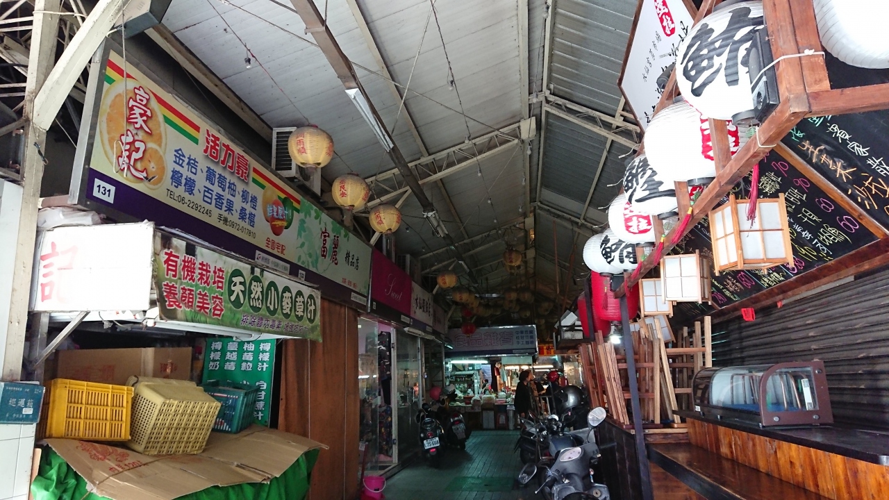 水仙宮という廟を中心にして広がっているそうです。基本的には朝市で市民の方の買い物の場所でもあるようです。台南では流しのタクシーが少ないと言われていますが、神農街の向かいあたりでタクシーに乗ることができました。また近隣には小吃のお店がたくさんあるので食べ歩きがてら周ってみました。