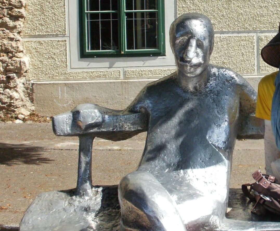 東側へ行ったところ、途中に気だるい感じのおじさんの像が置かれたベンチがあり、同行者と記念写真を撮りました。後で調べたら、19世紀末から20世紀初めにかけて作家・詩人・ジャーナリストとして幅広く活躍したAntun Gustav Matosと言う人で、クロアチアでは有名な人のようです。