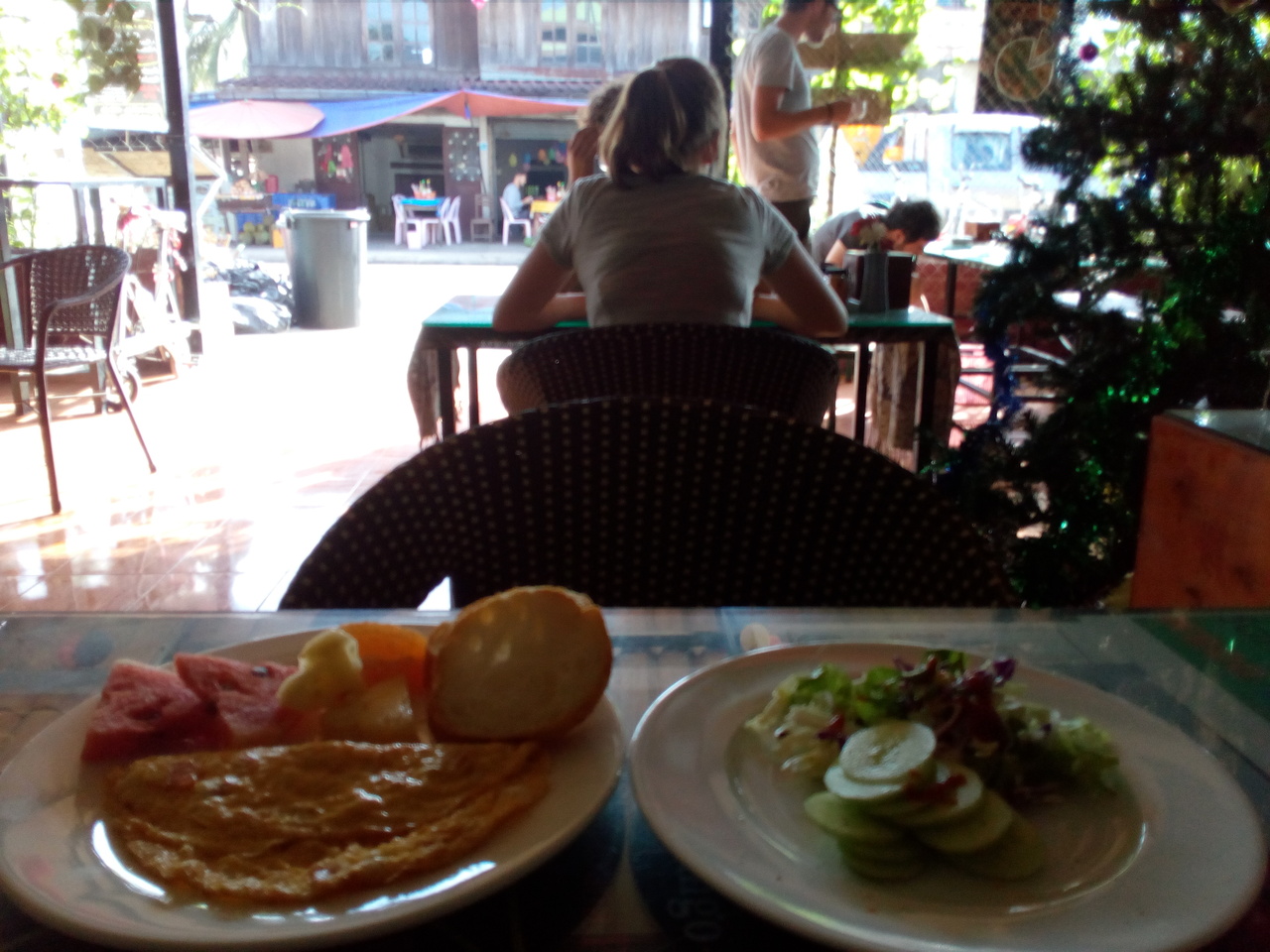 リゾート地としては有名ですが、町は小さく中心部からメイン通りを10分下流に向かった場所にあり、トレキングやチュービング楽しむパックパッカー人気の宿です。