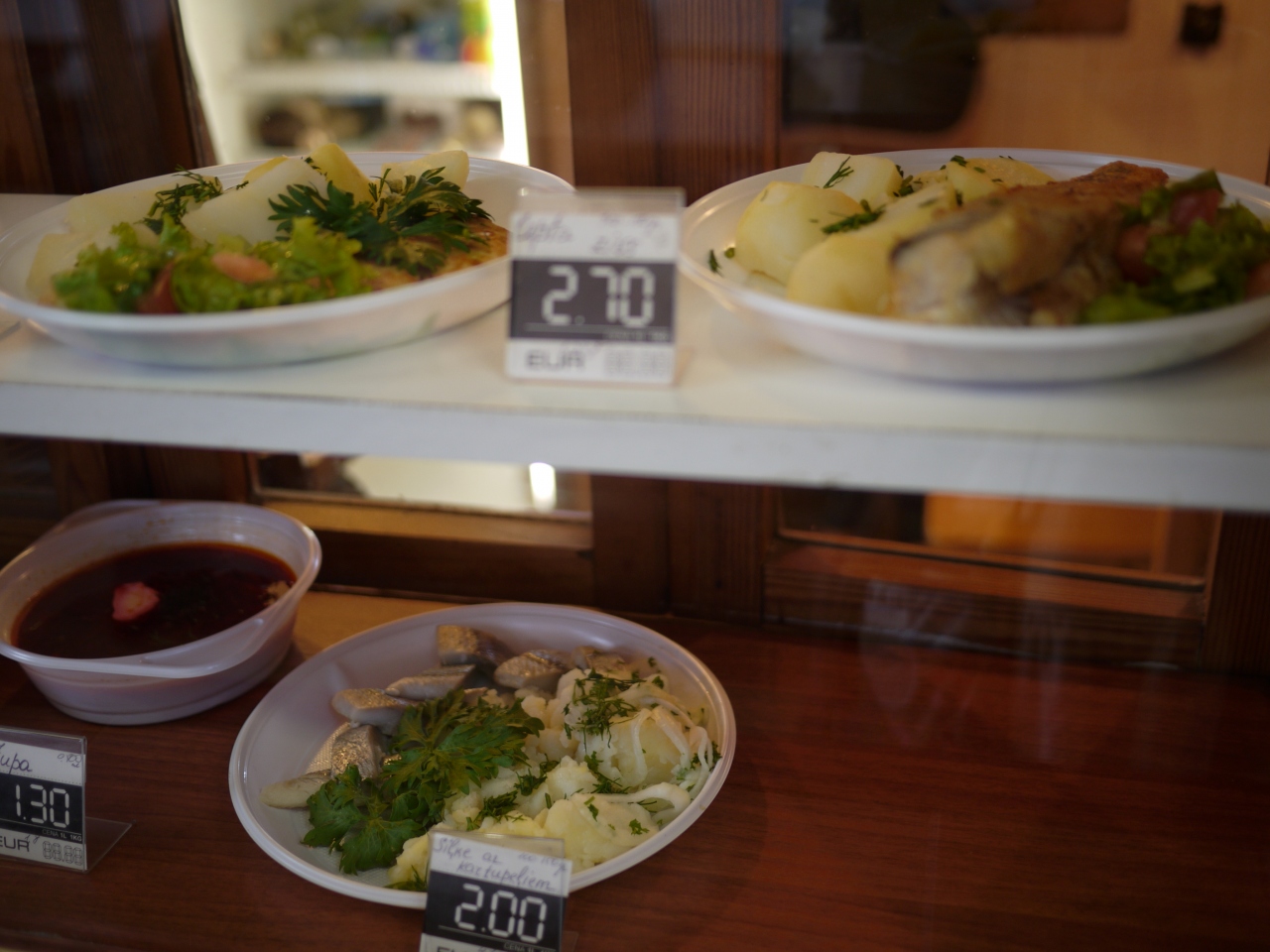 店員さんにオススメを聞くと、白身のお魚とジャガイモのつけあわせのプレートを勧められ、これを注文しました。2.7ユーロながら、ボリュームもあり、ちょうどよい塩加減!大満足でした。