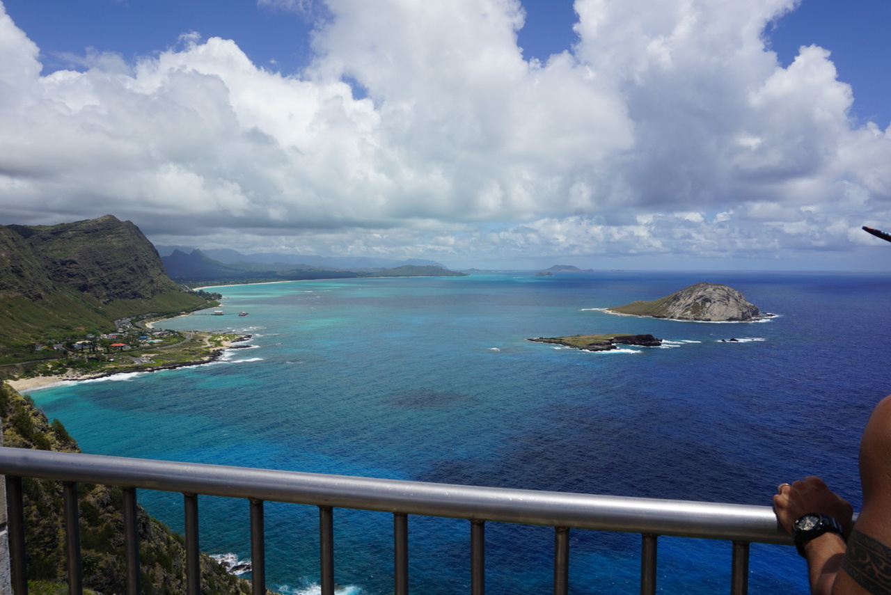 ワイキキくらレンタカーで30-40分ほどのマカプウの岬。駐車場は数がないのであくまで若干待ちました。