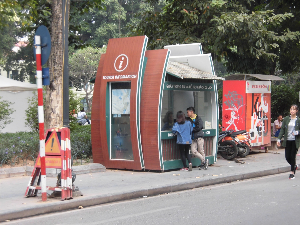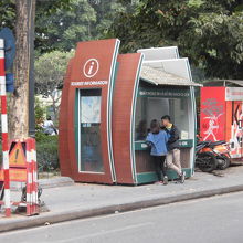 金曜日に行った時は、ひまそうでスマホをいじっていました。市内地図は貰えましたが、バス路線図は無いとのこと。翌日は、この周辺は歩行者天国で多くの人が、バイクがいなくなって安全になった通りを歩いていました。また、前を通ったら、お客がいて、相談に乗ってあげていました。週末は忙しいのかもしれません。