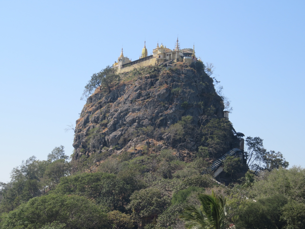小さい山の頂に寺院がありなかなか珍しい光景です。