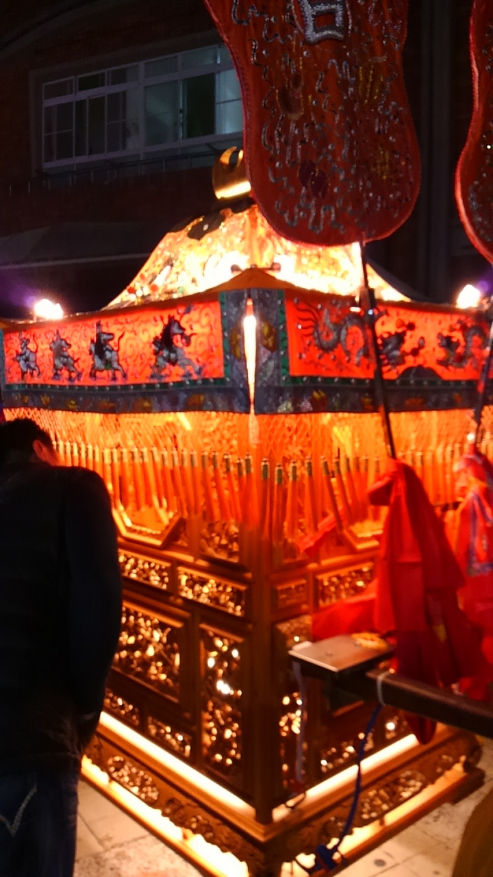 ちょうどお祭りが開催されていたようです。日本と同様にお祭りには多くの人たちが参加していてとても賑やかなお祭りでした。夜だったのでお神輿もライトアップしてあり、音楽、太鼓、爆竹などが絶え間なく続いていました。