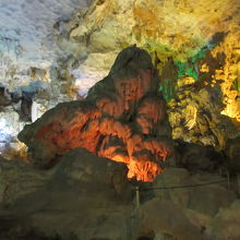 ハロン湾クルーズで立ち寄る最もポピュラーな洞窟。漁師が嵐を避けるために島に上陸し、偶然に見つけたそうです。中は広く赤青黄色等にスポットライトが当たっていて不思議な空間を作り出しています。さほど階段もなく楽に回ることが出来る鍾乳洞です。