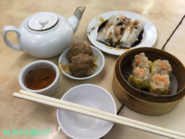 お茶と点心を2品程度でおおよそ35HKD程度。