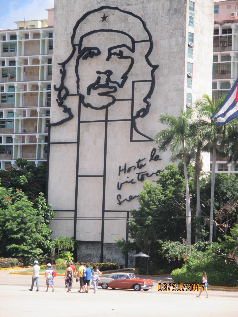 内務省や郵政省などの政治関連施設が建ち並ぶ、行政の中心地であるとともに、クラシックカーの訪問地の一つでもある、観光の中心地にもなっています。目当ては、行政施設の建物の壁に描かれた、革命家のチェ・ゲバラとカミーロ・シンフエゴスの肖像画です。
