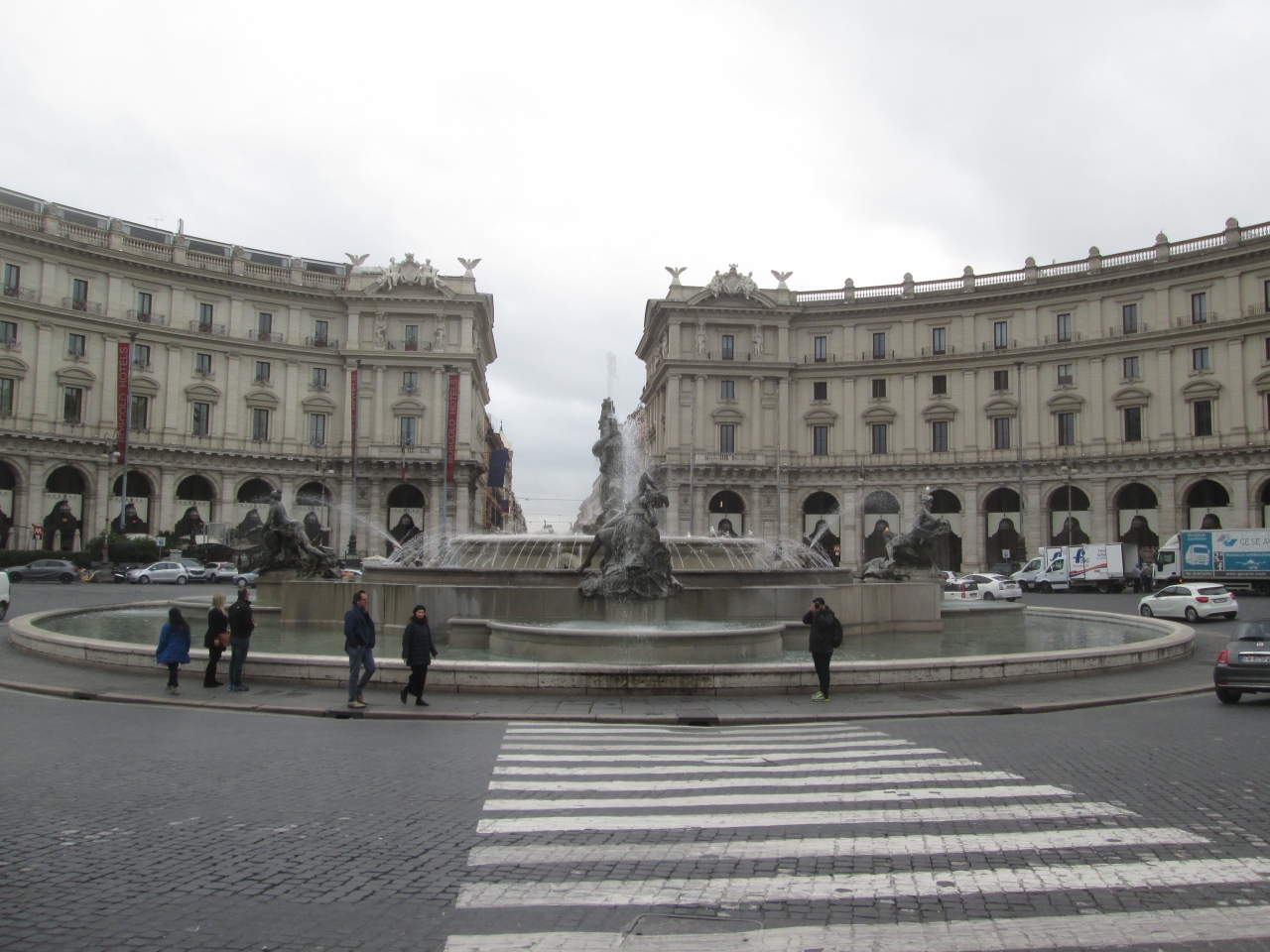 テルミニ駅に近く、ナツィオナーレ通りの起点にあたる場所にある広場です。ローマには数多くの広場がありますが、古代ローマ時代のディオクレチアヌス帝浴場にあった柱廊を利用して造られたため、明らかに他の広場とは異なる立派さを感じました。この広場から少し歩いたところに三越ローマ店があり、目印となりました。