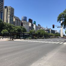 コロン劇場、オベリスコがある非常に幅広い通りです。通りの真ん中は、メトロバス専用の車線になっていました。メトロバス専用の車線と一般車の車線の間のスペースは、広場みたいになっていて、記念碑が置いてあるところがありました。