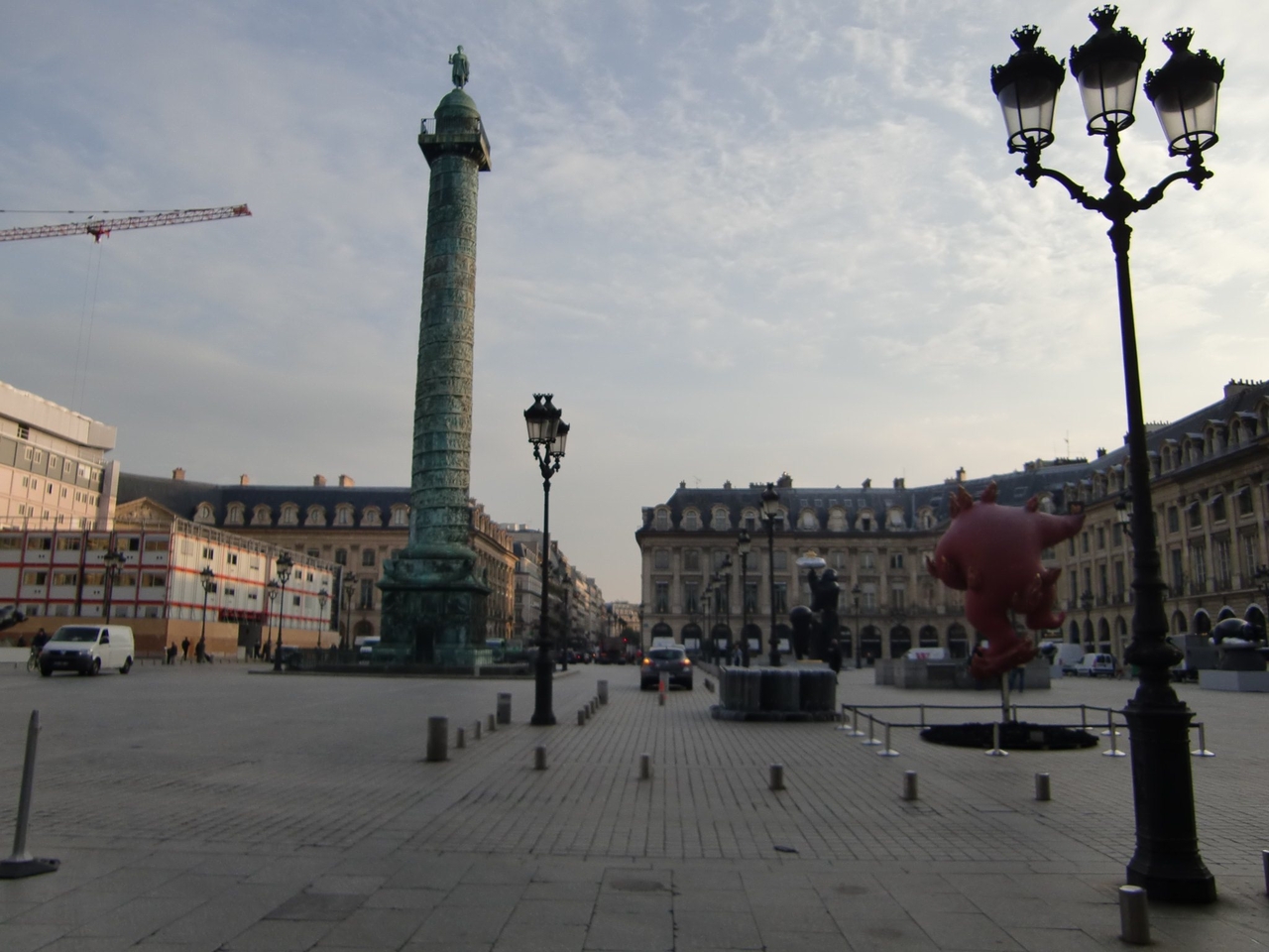 宝飾を扱うお店が並ぶラ・ペ通りの始点にもなっている広場で、中央には太くて高い柱が。ナポレオンの像があしらわれています。