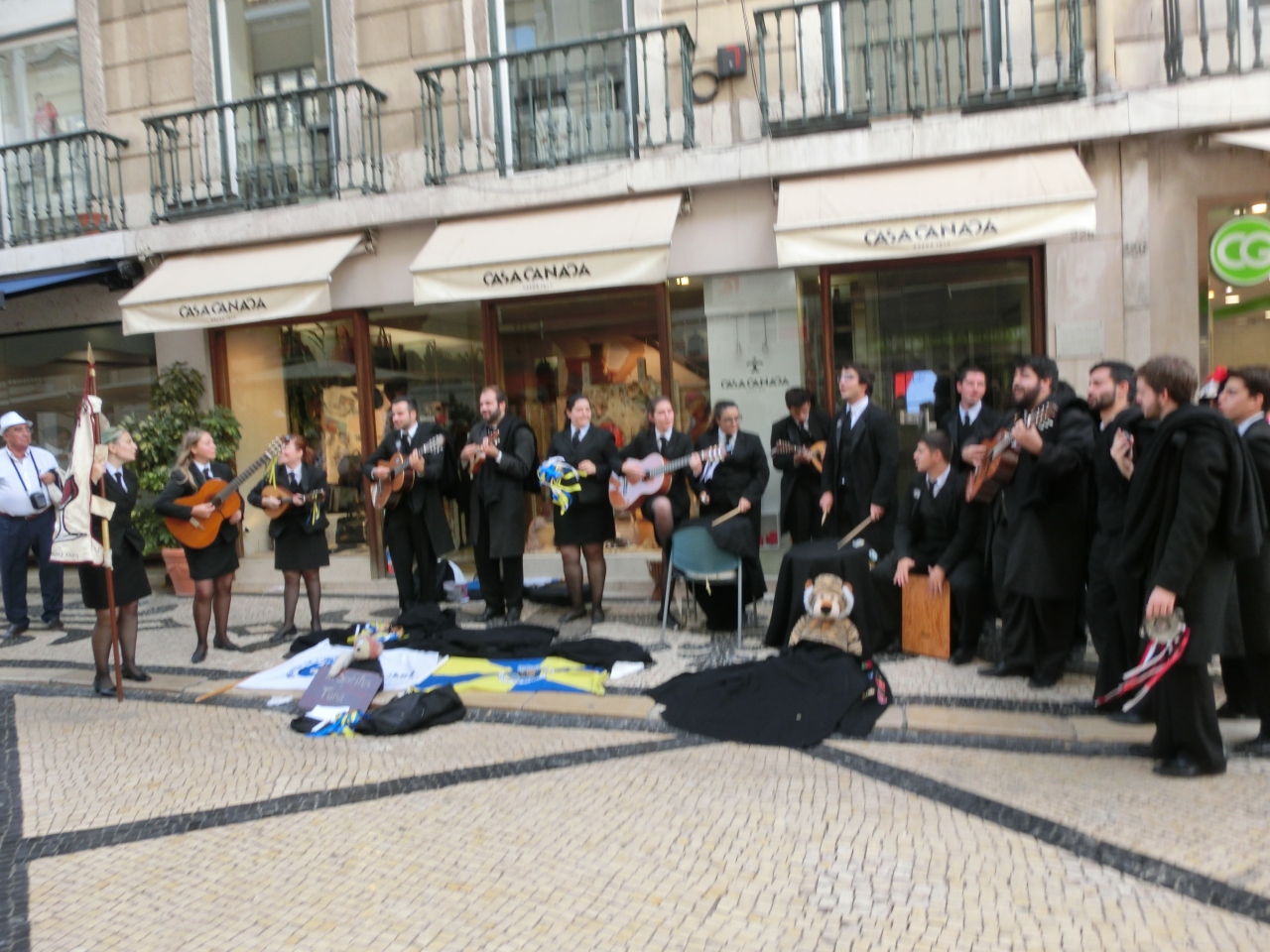 凱旋門をくぐると、歩行者天国のこの通りに入ります。両側に、カフェ・レストランが並んでいます。ベンフィカのオフィシャルショップや、観光客に人気の靴下屋Pedemeia、天使のアイスクリーム店Amorinoもこの通り沿いにあります。制服を着た大学生によるパーフォーマンスも、この通りで何回か、見かけました。