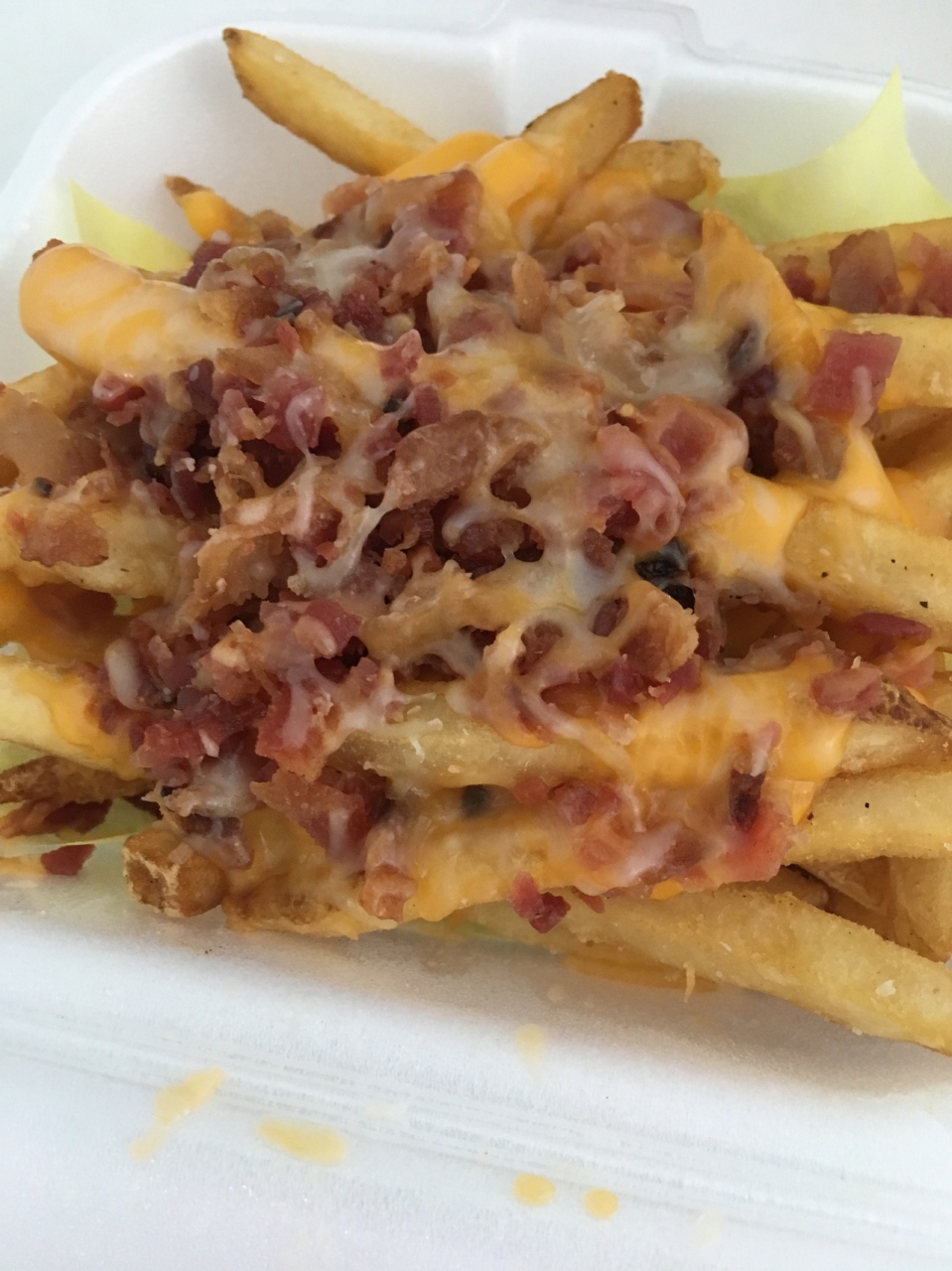 ガイドブックではアボガドスイスバーガーの紹介が多いですが、私はチーズホットドッグとベーコンチーズフライ(ポテト)をオススメします。