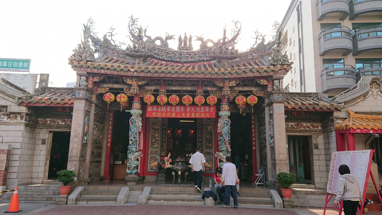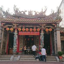 観光客等でにぎやかな通りにあり赤い提灯が並んでいて目立つのですぐ分かります。航海や漁業の女神を祀っているそうです。熱心にお参りしている方もいました。日が暮れてくると明かりが灯ってまた雰囲気が違ってきます。