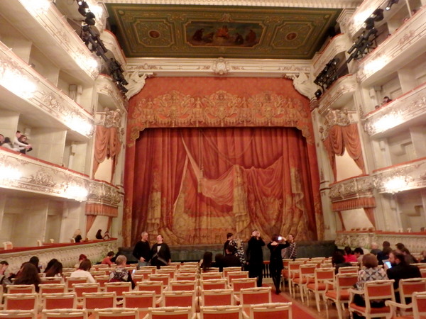 規模や名前ではマリインスキー劇場より劣るかもしれないですが、一人旅でバレエが終わるのが夜21時半頃とあって、中心部から近いこちらを利用。