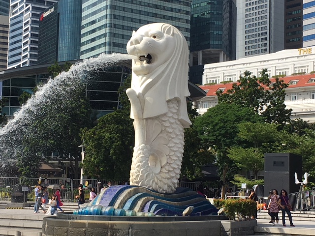 シンガポールといえば、このマーライオンが目に浮かぶほど定番中の定番の場所です。地下鉄のラッフルズ プレイス駅から人並みに付いて海の方に向かって行くと、よく写真で見たマーライオンが水を吐いていました。周りには写真を取る観光客でごった返しになっていました。対岸にはマリーナベイサンズが見え、一番シンガポールらしい場所でした。