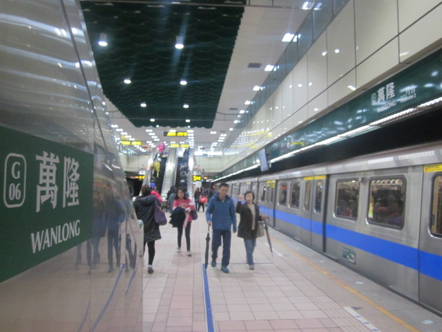 現在の台北の都市交通MRT内の各駅は、殆どがホームドア設置となっていますが、今後どうなるかは解らないという前提の上で、2018年1月現在で、まだこの駅はホームドアが未設置で、都心部と比較すると乗降客も少ないので、列車撮影にとてもお勧めの駅だと思います。ただ、その分、監視員の目が厳しいので、決して列車到着前後以外は、ホームに示された黄色のラインより前方に立ち入らないようにご注意下さい。(一歩でも踏み出すと、笛を鳴らして注意されます。)ただ、撮影に関しては非常に寛容なので、その辺は、中国本土と比較すると緊張せずに済むのが良いです。