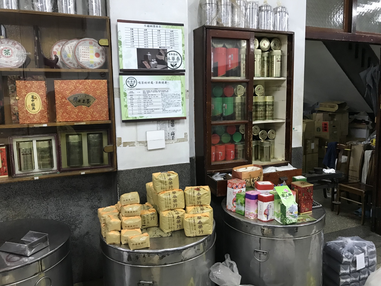 入口付近の缶は業務用なのかな?1斤(600g)200元とかの激安茶葉がズラリ。