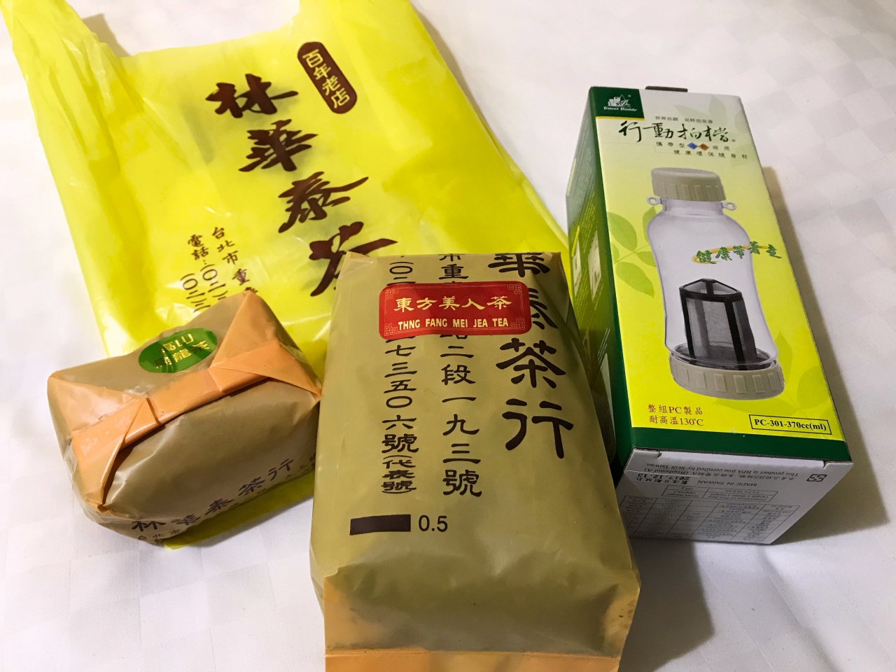 私が買ったものは、東方美人茶150g400元・高山烏龍茶150g400元・Travel Buddy小サイズ400元で、合計1200元でした。やっす!!