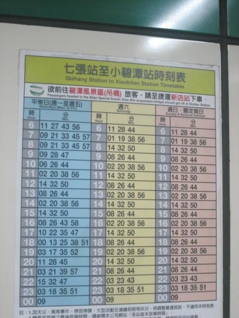 新北市域に位置する駅の一つで、台北の市街地からは少し離れていますが、グリーンラインで一本で行けるので、それ程不便は感じませんでした。ここはグリーンラインの支線扱いとしての小碧潭支線が発着する駅で、運が良ければ、駅に到着後すぐに乗り換えることが出来ます。ただ、小碧潭支線はMRTの他路線と比較しても、最も運行本数が少なく、ラッシュ時でも1時間に6本程度、オフピークですと、1時間に3本位しか運行がありませんので、発車時刻をよく確認された上で、駅構内や近辺の散策、小碧潭支線の旅を楽しまれると無駄がなくて良いかと思います。