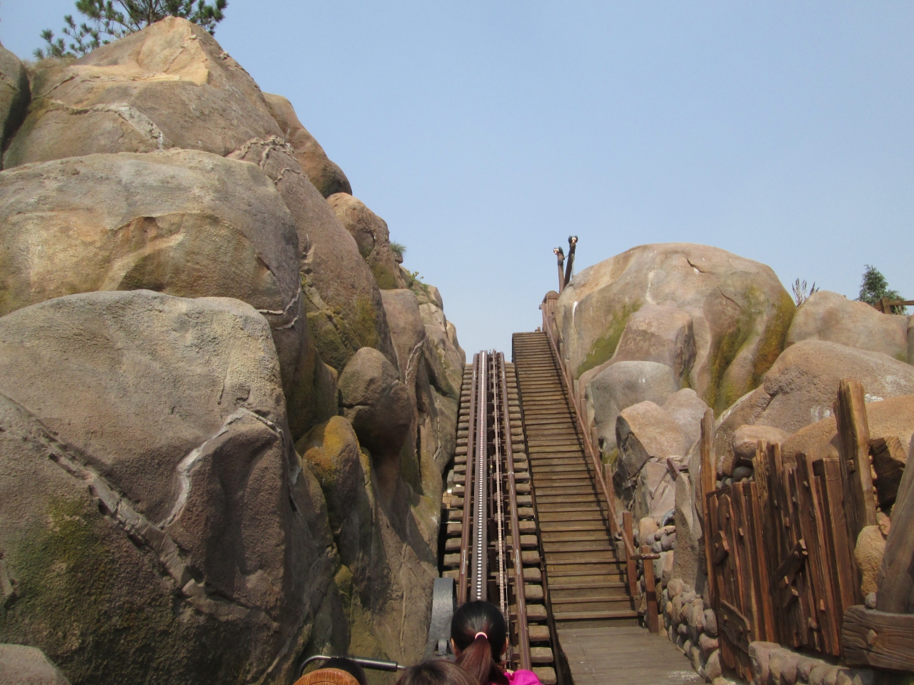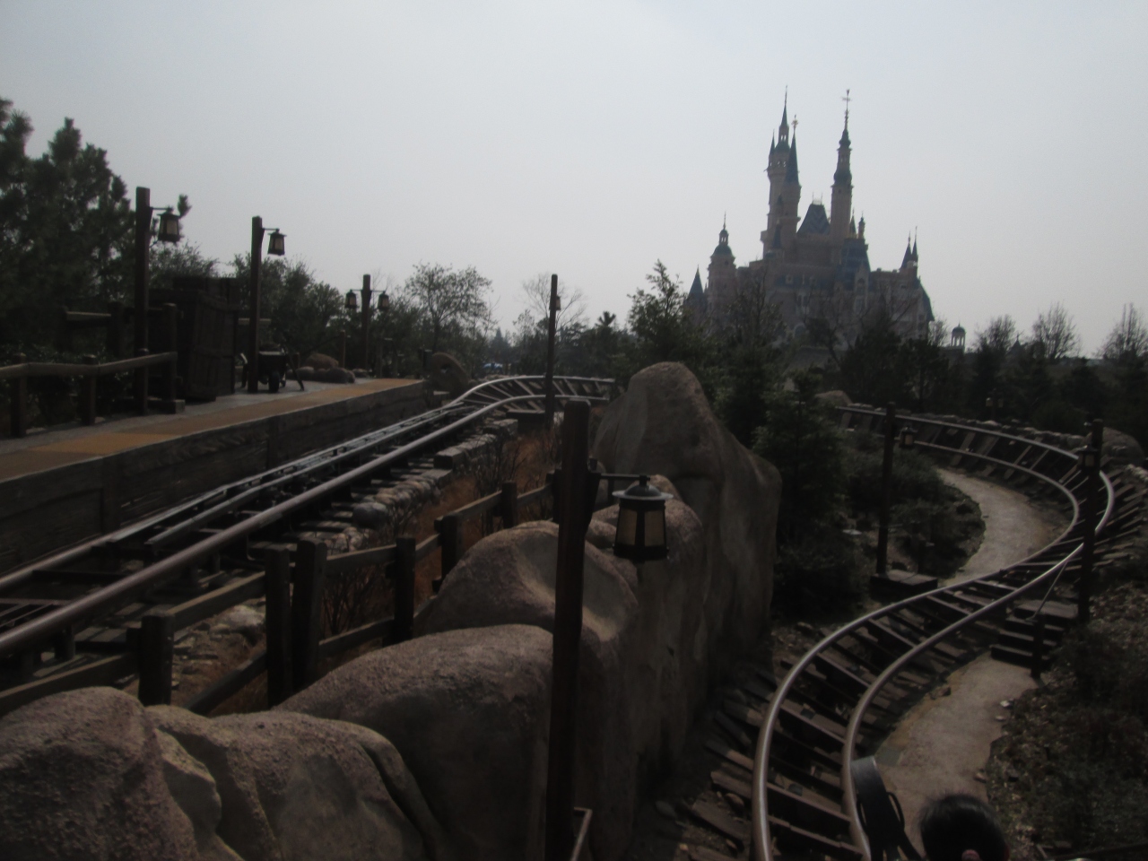 七人の小人のマイントレインに乗車していると、2回ほど高い位置にライドが上がります。乗車しながら上海ディズニーランドが上から見れる非常に景色のいいポイントで、エンチャンテッド ストーリーブック キャッスルがはっきりと分かりました。