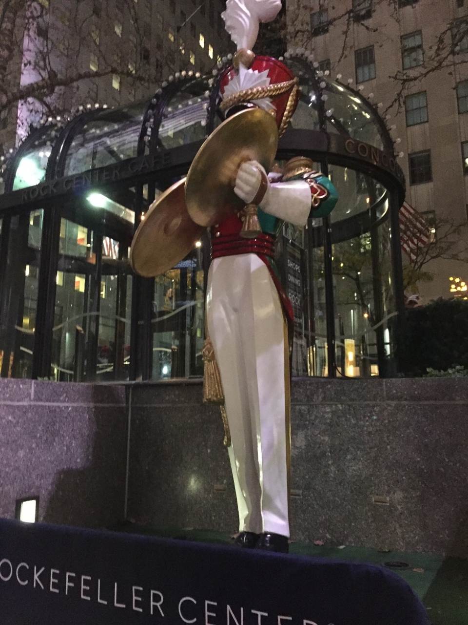 昼も夜も観光客でいっぱいで多くのひとが有名な金のオブジェの前に群がりその周りで写真をとっています。クリスマス時期にむけてイルミネーションの準備がされていました。